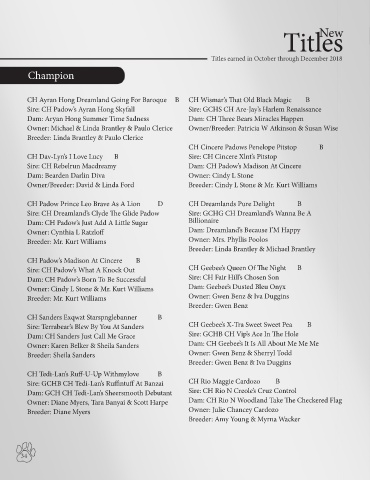 Breeder: Diane Myers Owner: Julie Chancey Cardozo