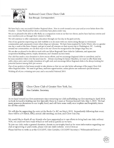 club or upcoming or past events, please visit our club’s website: www.Chow.us