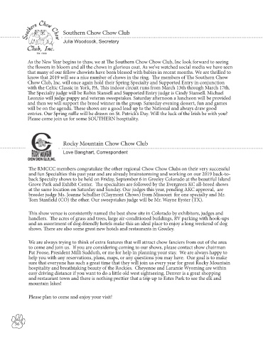 As the New Year begins to thaw, we at The Southern Chow Chow Club, Inc look forward to seeing