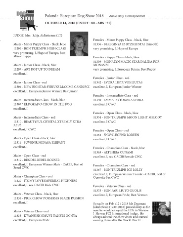 Poland : European Dog Show 2018 Annie Baty, Correspondent