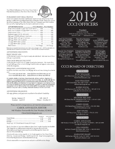 fancier, in addition to reporting information of Regional Clubs. Chow Life contains 2019