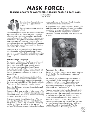 moving to the next step when the dog is ready,” wearing the mask for short periods. “Put the