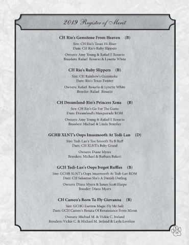Dam: CH Rio's Ruby Slippers