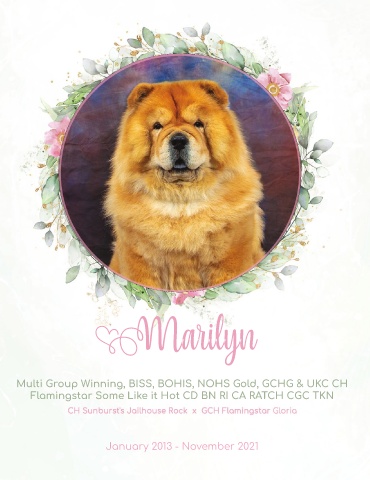 Marilyn Multi Group Winning, BISS, BOHIS, NOHS Gold, GCHG & UKC CH Flamingstar Some Like it Hot CD BN RI CA RATCH CGC TKN January 2013 - November 2021