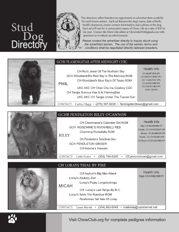 Stud Each ad will run for 4 consecutive issues of Chow Life at a rate of $20 for