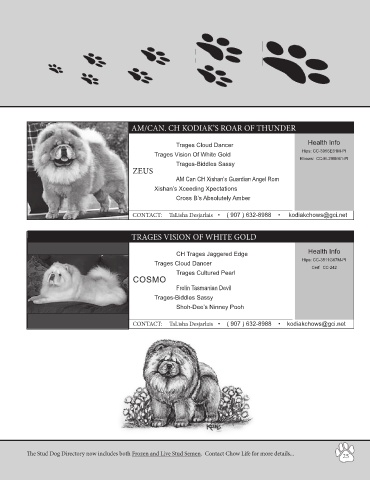 The Stud Dog Directory now includes both Frozen and Live Stud Semen. Contact Chow Life for more details... 25