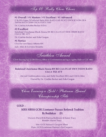 (Chow Earning legs in Obedience, ribbon in Conformation and leg in Agility, Rally or CGC title)