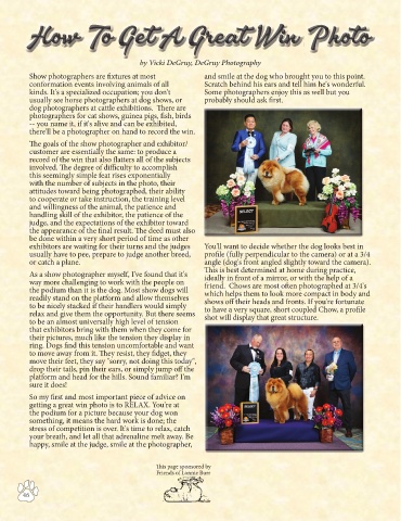 Show photographers are fixtures at most and smile at the dog who brought you to this point.