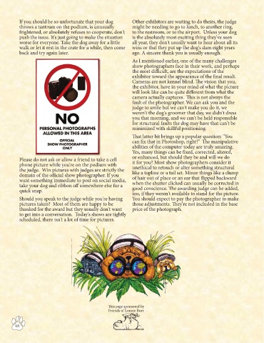 If you should be so unfortunate that your dog Other exhibitors are waiting to do theirs, the judge