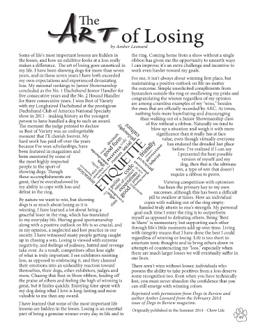 I have learned that some of the most important life issue of Dogs in Review magazine.
