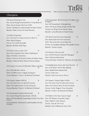 CH Ayran Hong Spice Girl B CH Dreamland's The First Lady Of Golden Lion