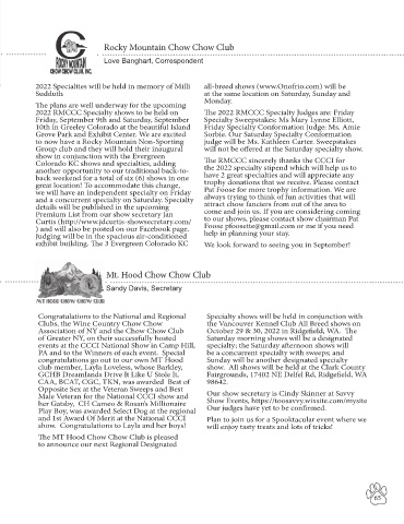 2022 RMCCC Specialty shows to be held on The 2022 RMCCC Specialty Judges are: Friday