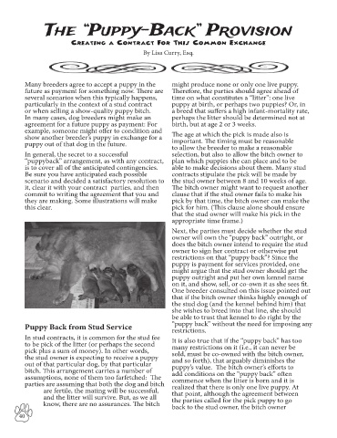 In stud contracts, it is common for the stud fee It is also true that if the “puppy back” has too