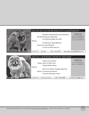 The Stud Dog Directory now includes both Frozen and Live Stud Semen. Contact Chow Life for more details...
