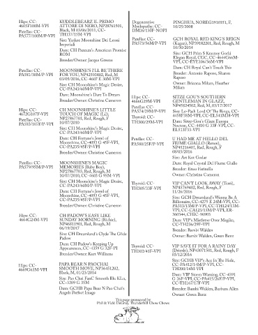 Hips: CC- CH MOONSHINE'S LITTLE PA574/29M/P-VPI Sire: Le-Pash Lord Of The Rings, CC-
