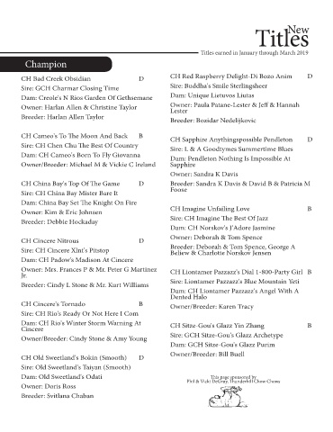 CH China Bay's Top Of The Game D Breeder: Sandra K Davis & David B & Patricia M