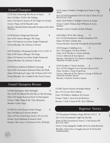 Dam: CH Pao Chai Picture Perfect Pin Up Girl CH Dreamland Mistletoe Magic BN RA CGCA B