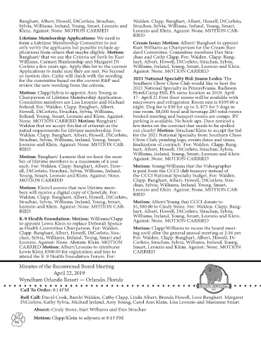 Motion: Klein/Leonzio that new lifetime mem- Leonzio and Klein. Against: None. MOTION CAR-