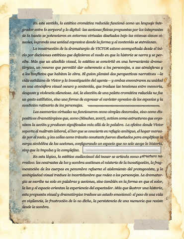 desgaste y violencia silenciosa. Así, la elección de una paleta cromática reducida no fue