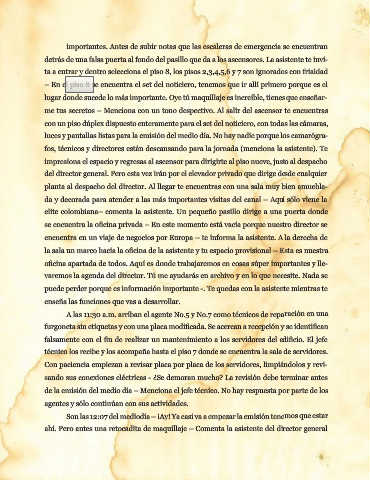 – En el piso 8 se encuentra el set del noticiero, tenemos que ir allí primero porque es el