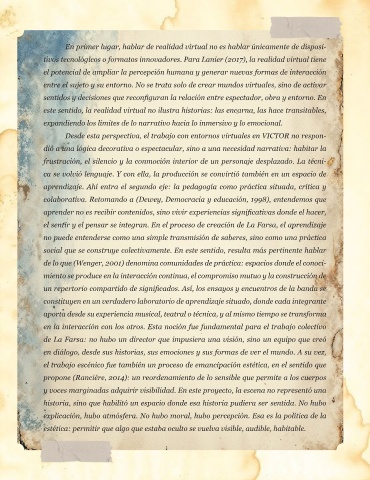 el sentir y el pensar se integran. En el proceso de creación de La Farsa, el aprendizaje