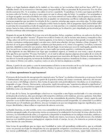 jerárquica de enseñanza, sino que emergen del encuentro cotidiano entre músicos, actores y gestores. Esta diná-