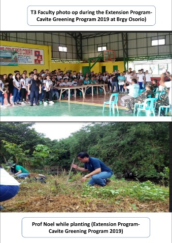T3 Faculty photo op during the Extension Program- Cavite Greening Program 2019 at Brgy Osorio) Prof Noel while planting (Extension Program- Cavite Greening Program 2019)