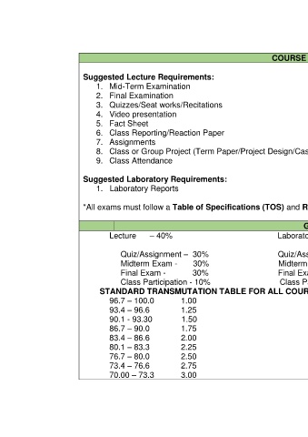STANDARD TRANSMUTATION TABLE FOR ALL COURSES