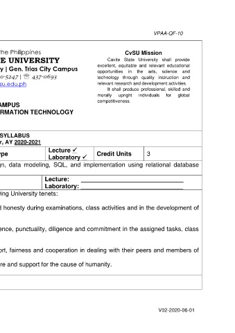 CvSU Vision CAVITE STATE UNIVERSITY Cavite State University shall provide