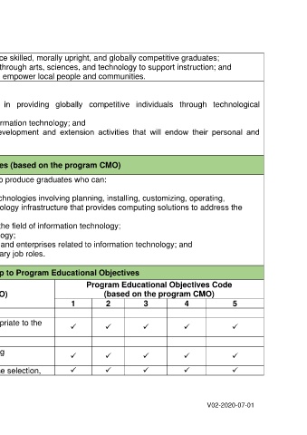 The Bachelor of Science in Information Technology program aims to produce graduates who can: