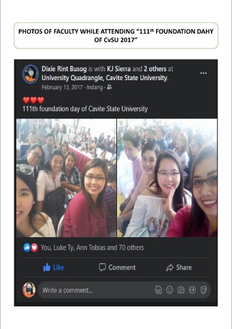 PHOTOS OF FACULTY WHILE ATTENDING “111 FOUNDATION DAHY th OF CvSU 2017”