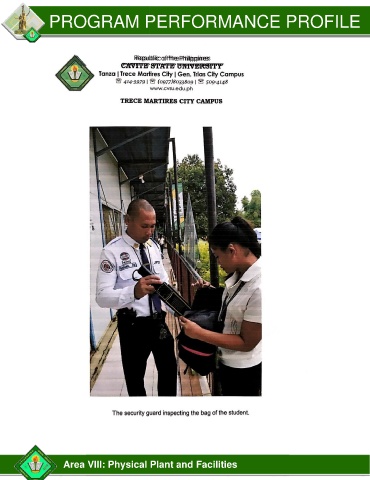 PROGRAM PERFORMANCE PROFILE Area VIII: Physical Plant and Facilities