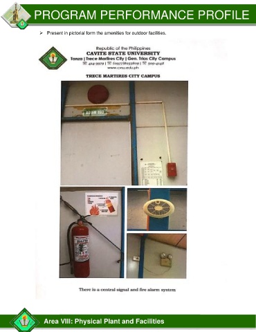 PROGRAM PERFORMANCE PROFILE ➢ Present in pictorial form the amenities for outdoor facilities. Area VIII: Physical Plant and Facilities