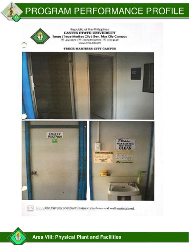PROGRAM PERFORMANCE PROFILE Area VIII: Physical Plant and Facilities