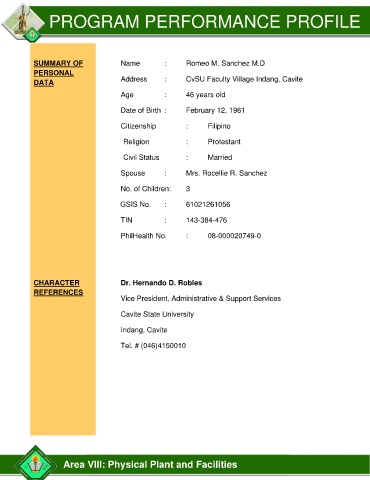 Page 463 - AREA VIII Program Performance Profile