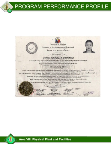 PROGRAM PERFORMANCE PROFILE Area VIII: Physical Plant and Facilities