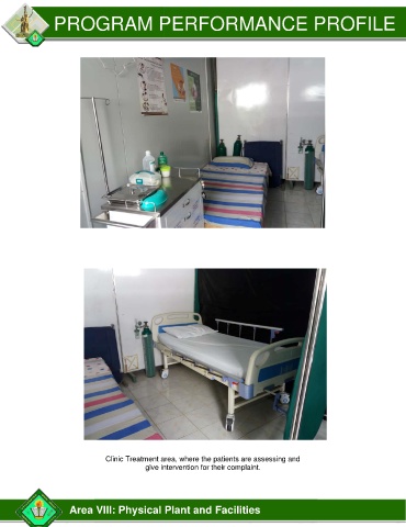 PROGRAM PERFORMANCE PROFILE Clinic Treatment area, where the patients are assessing and give intervention for their complaint. Area VIII: Physical Plant and Facilities