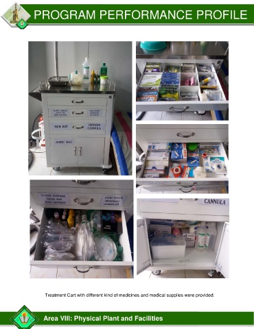 Treatment Cart with different kind of medicines and medical supplies were provided.