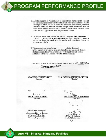 PROGRAM PERFORMANCE PROFILE Area VIII: Physical Plant and Facilities