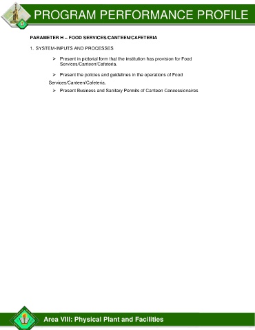 PARAMETER H – FOOD SERVICES/CANTEEN/CAFETERIA