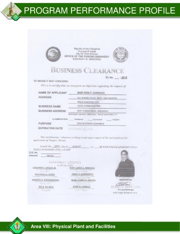 PROGRAM PERFORMANCE PROFILE Area VIII: Physical Plant and Facilities