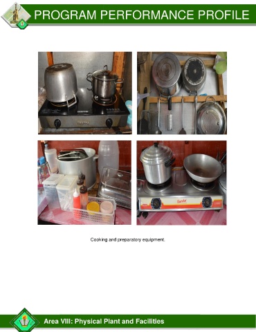 PROGRAM PERFORMANCE PROFILE Cooking and preparatory equipment. Area VIII: Physical Plant and Facilities