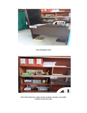 Clinic Reception Area Clinic Record Section, where all the students, faculties, and staffs’ medical records are kept.