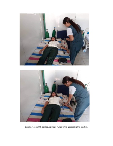 Gwena Rochiel G. Lontoc, campus nurse while assessing the student.