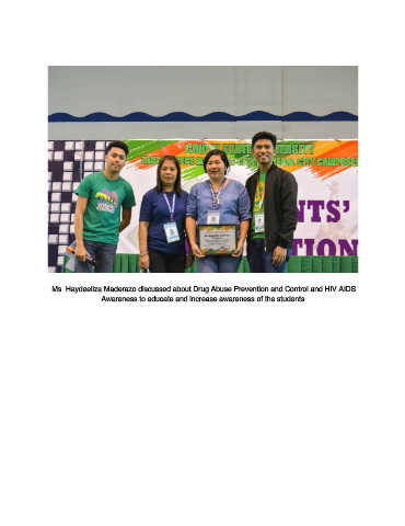 Ms. Haydeeliza Maderazo discussed about Drug Abuse Prevention and Control and HIV AIDS Awareness to educate and increase awareness of the students.