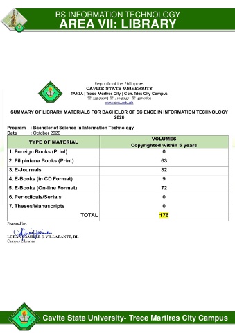 BS INFORMATION TECHNOLOGY AREA VII: LIBRARY Cavite State University- Trece Martires City Campus
