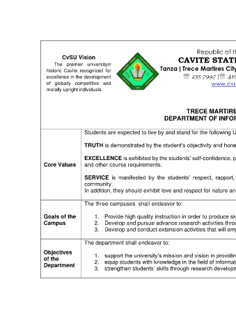 CvSU Vision CAVITE STATE UNIVERSITY CvSU Mission