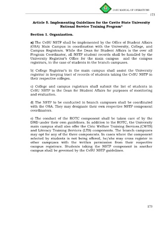 a) The CvSU NSTP shall be implemented by the Office of Student Affairs