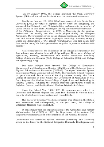 Finally, on January 22, 1998, DSAC was converted into Cavite State