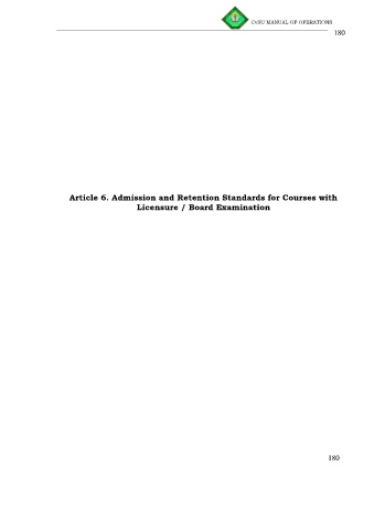 CvSU MANUAL OF OPERATIONS ________________________________________________________________________ 180 Article 6. Admission and Retention Standards for Courses with Licensure / Board Examination 180